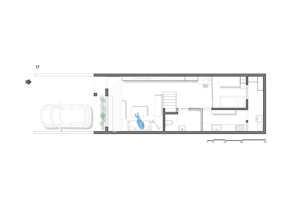 The case applied the home caregivers' angle to start reminding us of the focus of primary users in the caring domestic space. We focus on two circulations in the space, caring and living.